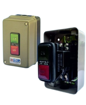 Manually operated ( hand operated) Mini Motor starter Type HP1 offers overload & isolation protection for your motor. It, consists of a double break three pole on-load switch ,operated by means of a toggle link mechanism. Overload protection is provided by three accurately calibrated bimetal heater coils.